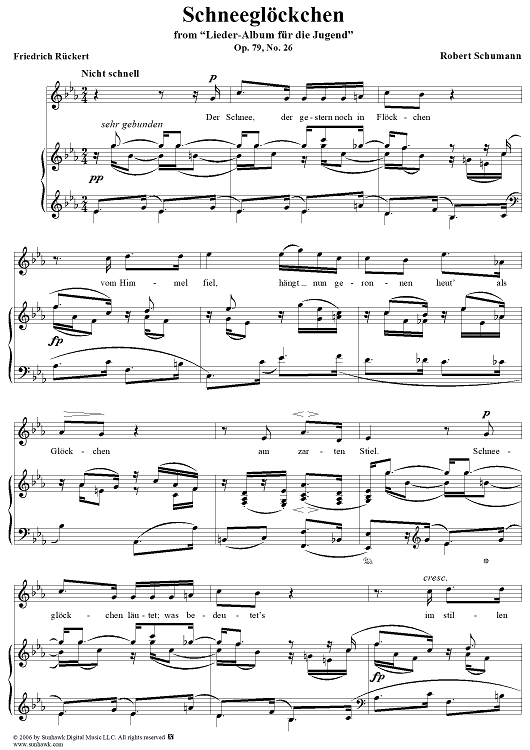 Digital Sheet Music for Schneeglöckchen, No. 26, Op. 79 by Friedrich Rückert, Robert Schumann scored for Voice/Piano; id:318147