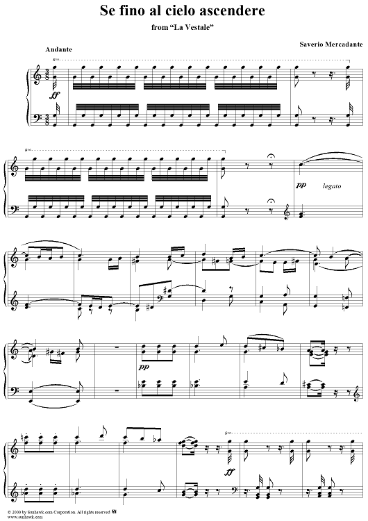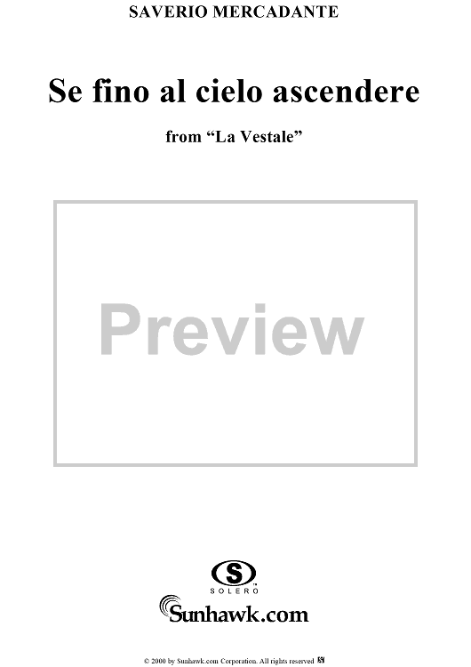 Digital Sheet Music for Se fino al cielo ascendere, from "La Vestale" by Saverio Mercadante scored for Voice/Piano; id:274926