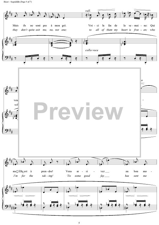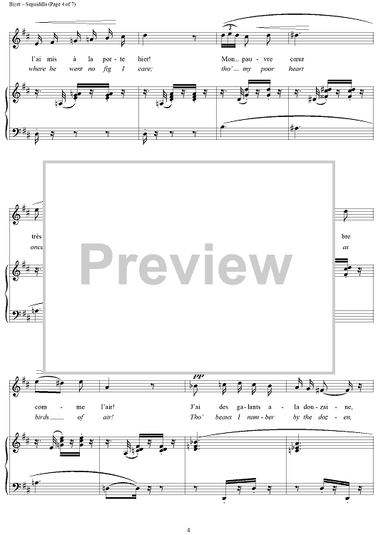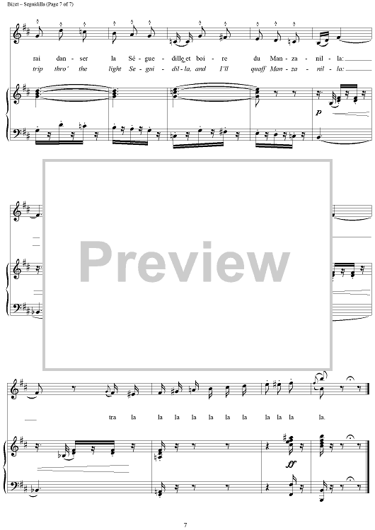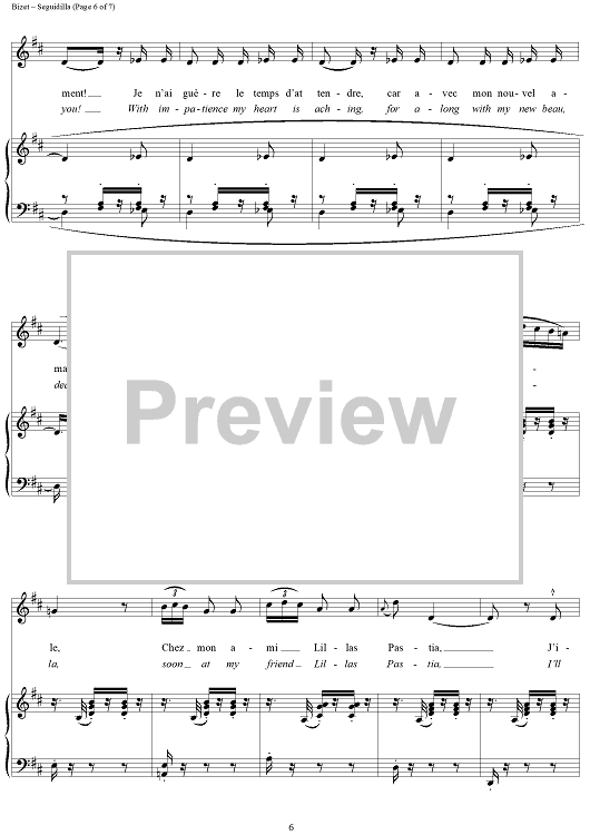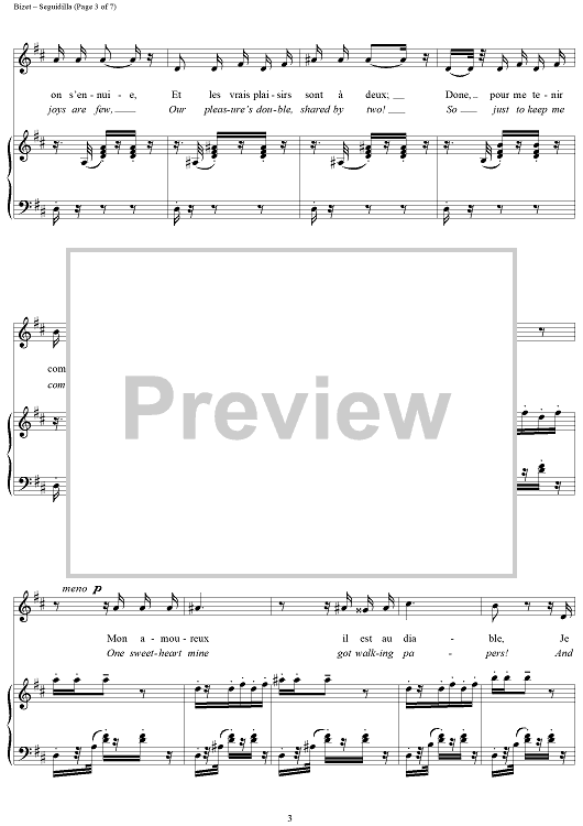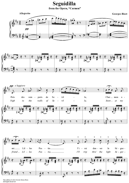 Digital Sheet Music for Seguidilla (from "Carmen") by Georges Bizet scored for Voice/Piano; id:118007