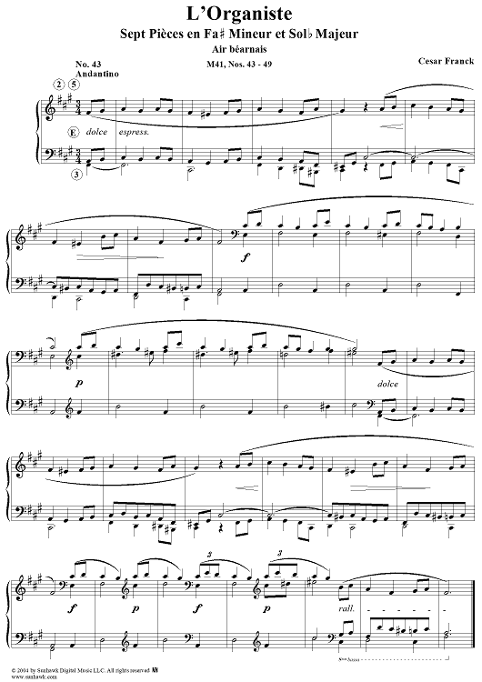 "Sept Pièces en fa # mineur et en sol b majeur" Sheet Music by César Franck