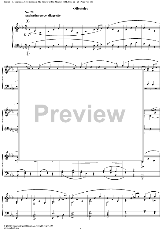"Sept Pièces en mi b mineur et en mi b majeur" Sheet Music by César Franck