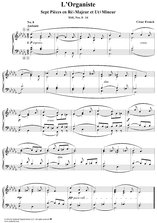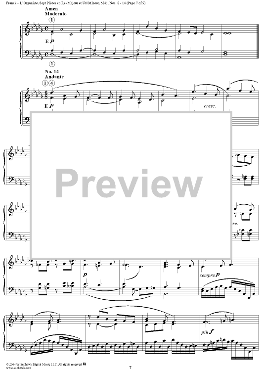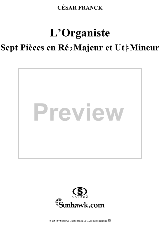 Digital Sheet Music for Sept Pièces en ré b majeur et en ut # mineur by César Franck scored for Organ Solo; id:303557