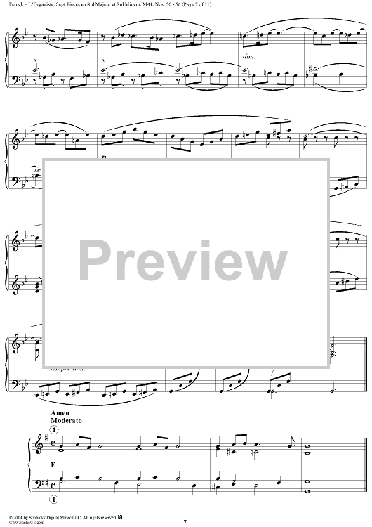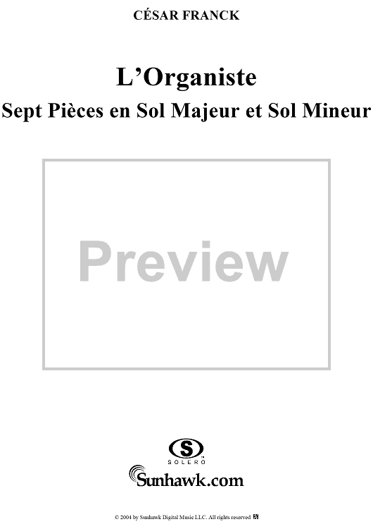 Digital Sheet Music for Sept Pièces en sol majeur et en sol mineur by César Franck scored for Organ Solo; id:303563