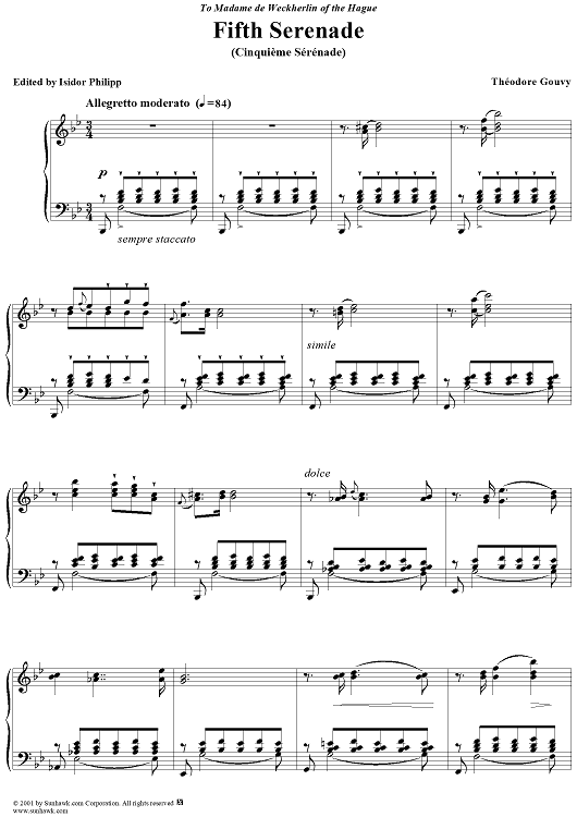 Digital Sheet Music for Serenade No. 5 (Cinquième Sérénade) by Théodore Gouvy scored for Piano Solo; id:268007