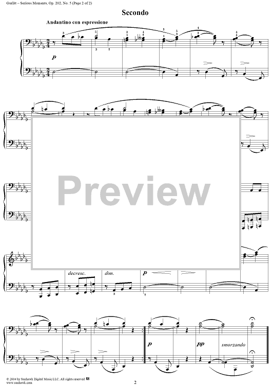 Digital Sheet Music for Serious Moments, No. 5 from "Stray Leaves", Op. 202 by Cornelius Gurlitt scored for 1 Piano, 4 Hands; id:303885