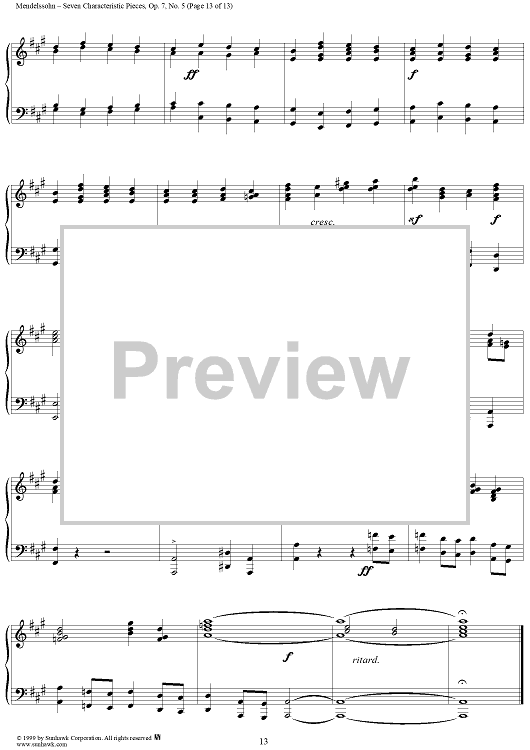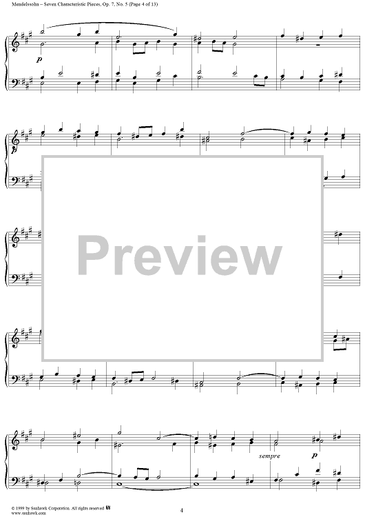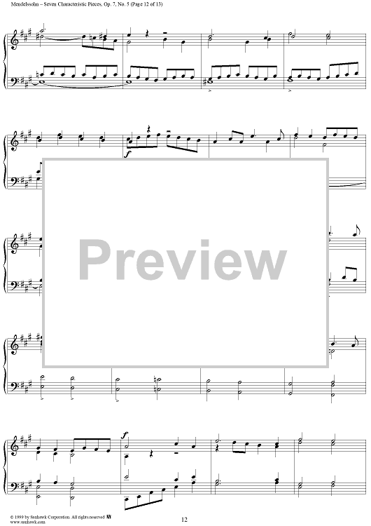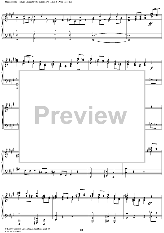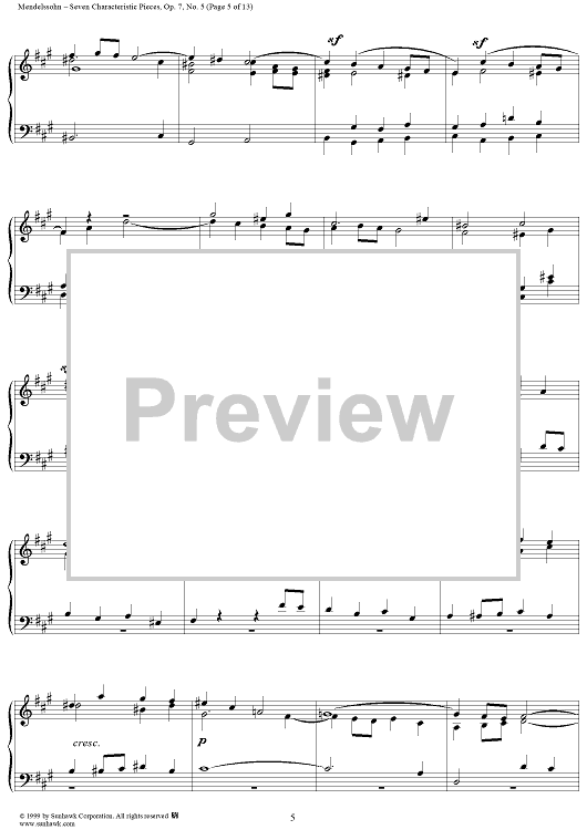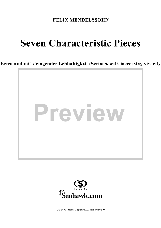 Digital Sheet Music for Seven Characteristic Pieces, no. 5: Ernst und mit steigender Lebhaftigkeit by Felix Mendelssohn scored for Piano Solo; id:113442