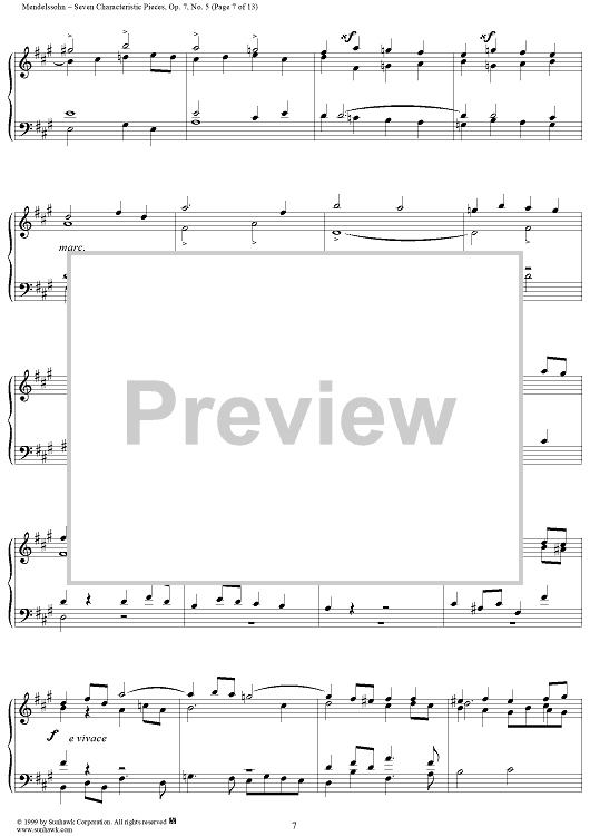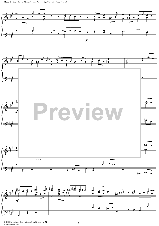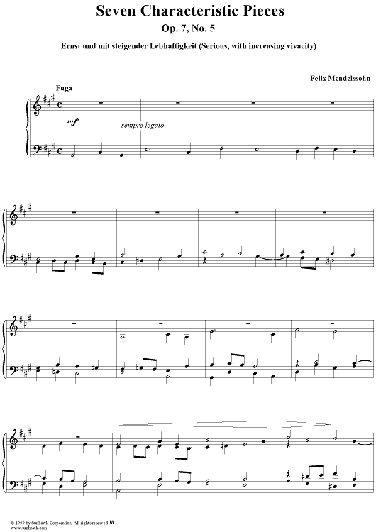 "Seven Characteristic Pieces, no. 5: Ernst und mit steigender Lebhaftigkeit" Sheet Music by Felix Mendelssohn