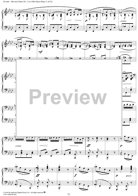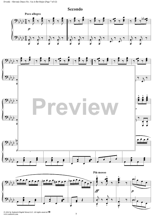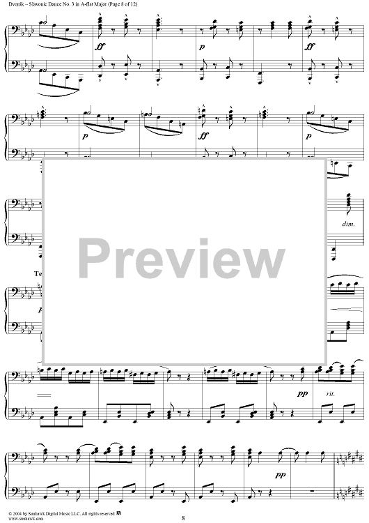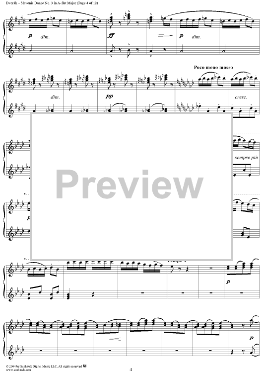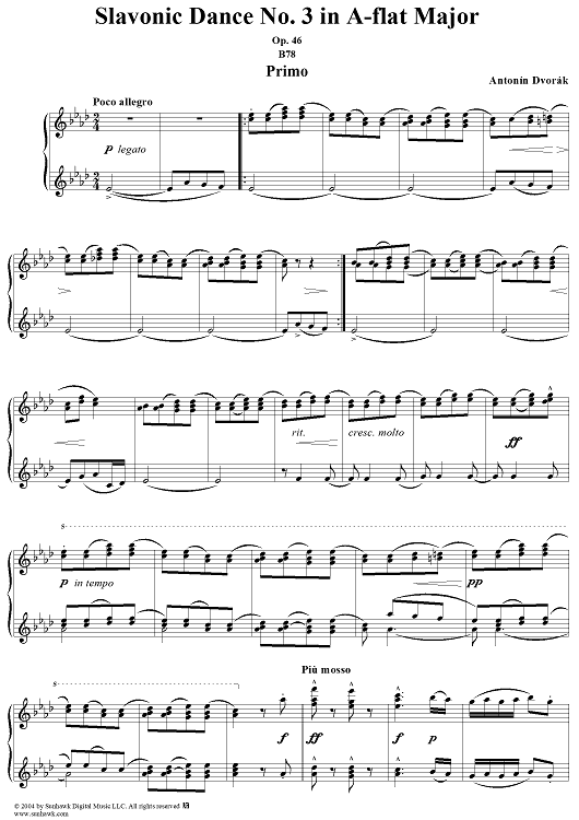 Digital Sheet Music for Slavonic Dance No. 3 in A-flat Major, Op. 46, No. 3 by Antonín Dvorák scored for 1 Piano, 4 Hands; id:296103