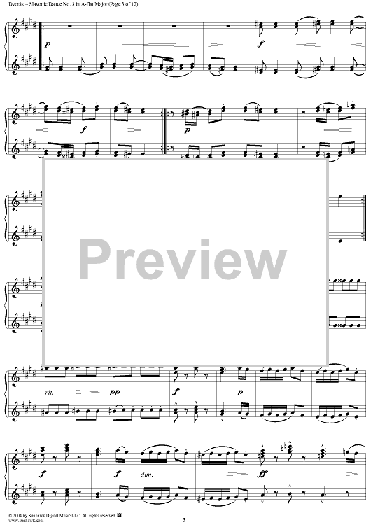 "Slavonic Dance No. 3 in A-flat Major, Op. 46, No. 3" Sheet Music by Antonín Dvorák