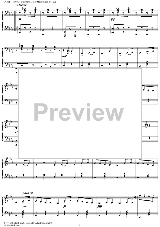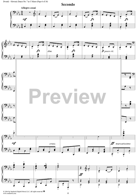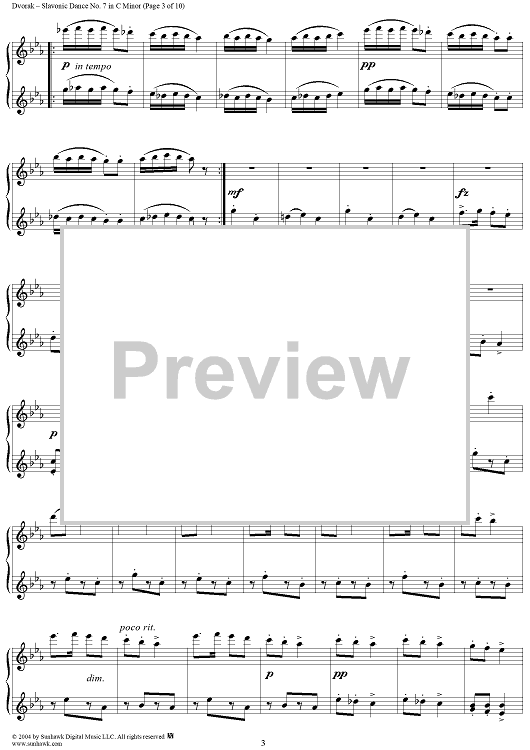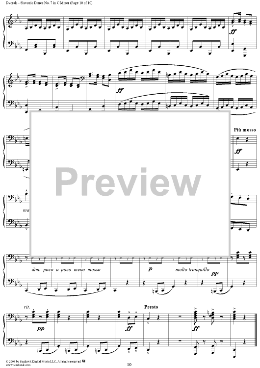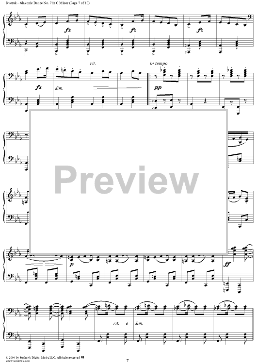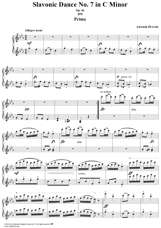 Digital Sheet Music for Slavonic Dance No. 7 in C Minor, Op. 46, No. 7 by Antonín Dvorák scored for 1 Piano, 4 Hands; id:296104