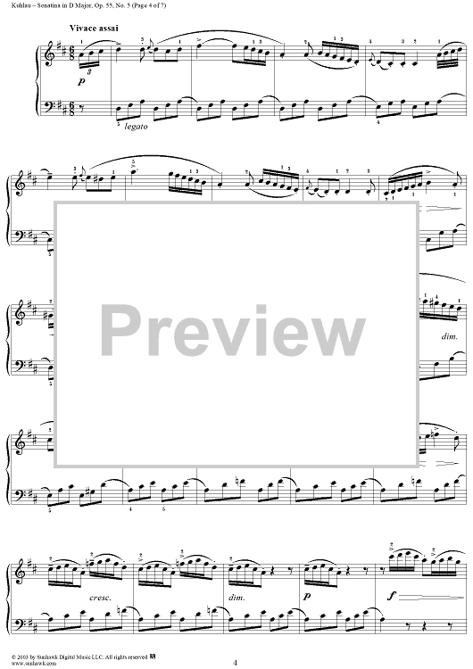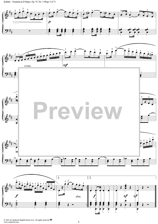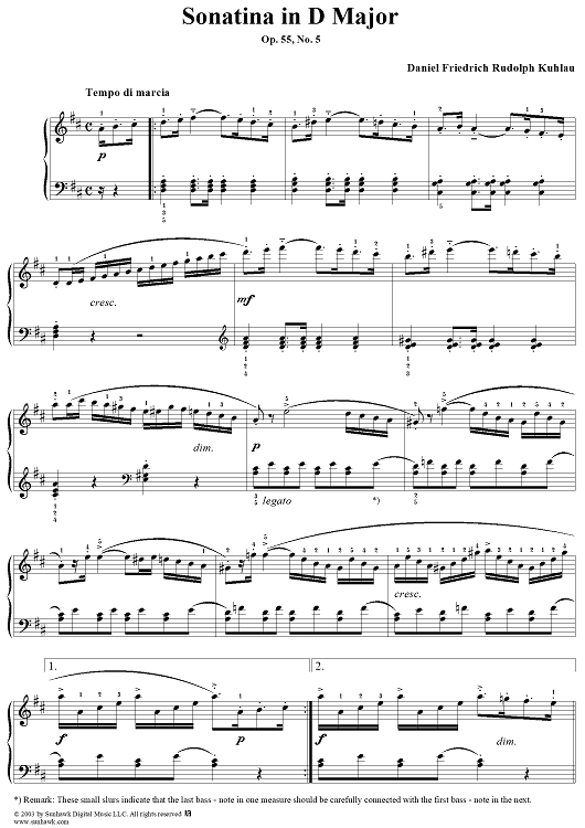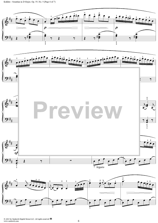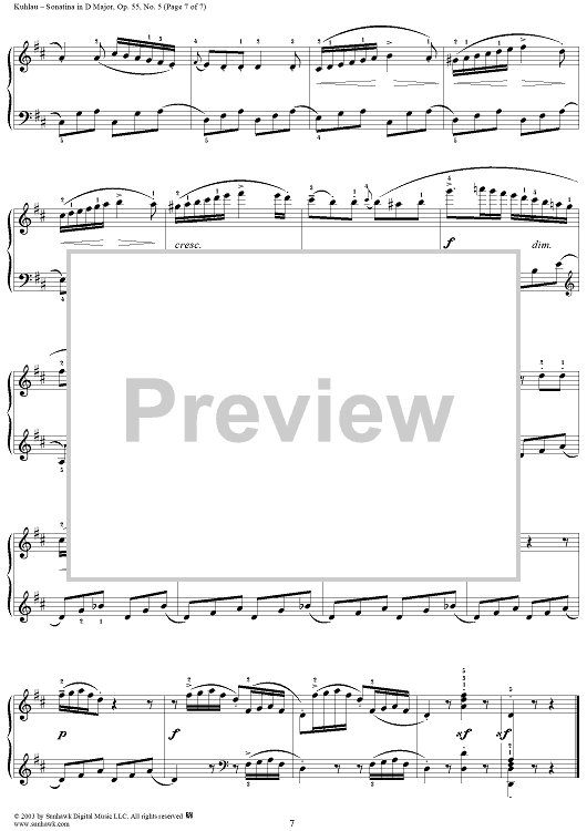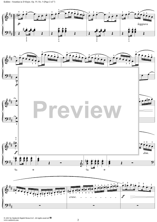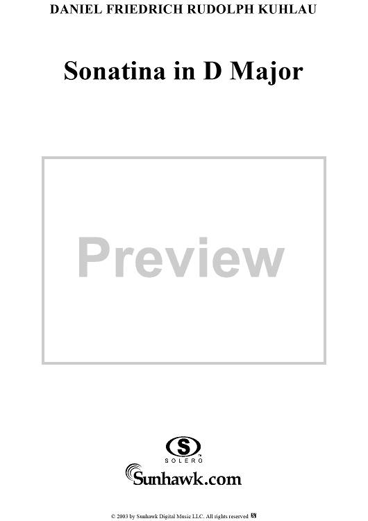 Digital Sheet Music for Sonatina in D Major, Op. 55, No. 5 by Friedrich Kuhlau scored for Piano Solo; id:294531