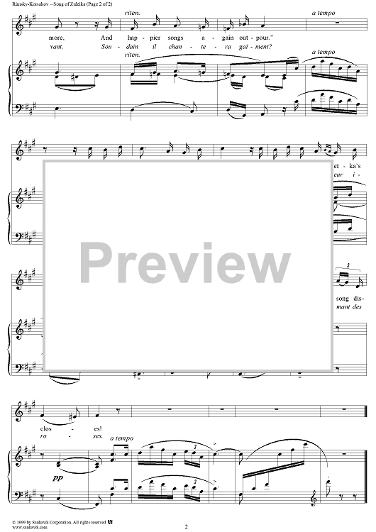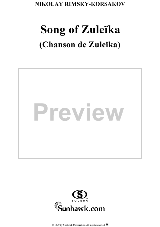 "Song of Zuleika" Sheet Music by Nikolai Rimsky-Korsakov