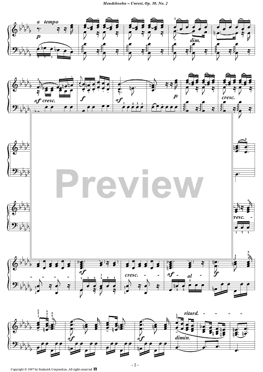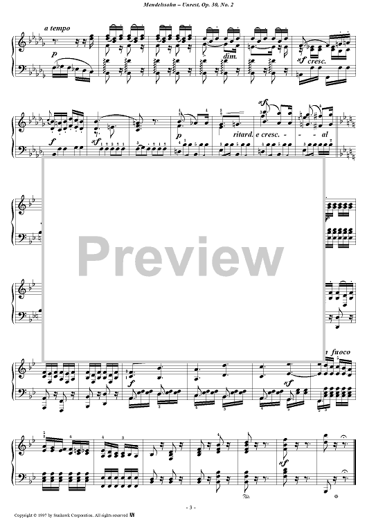Digital Sheet Music for Songs Without Words (Book II), op. 30, no. 2: Unrest by Felix Mendelssohn scored for Piano Solo; id:94602