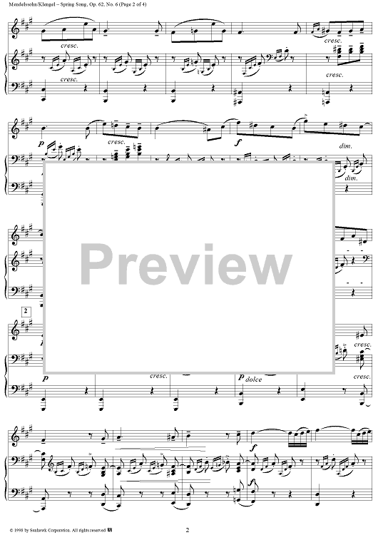 Digital Sheet Music for Songs without Words (Book V), Op. 62, No. 6: Spring Song - Piano Score by Felix Mendelssohn scored for Violin/Piano; id:96003