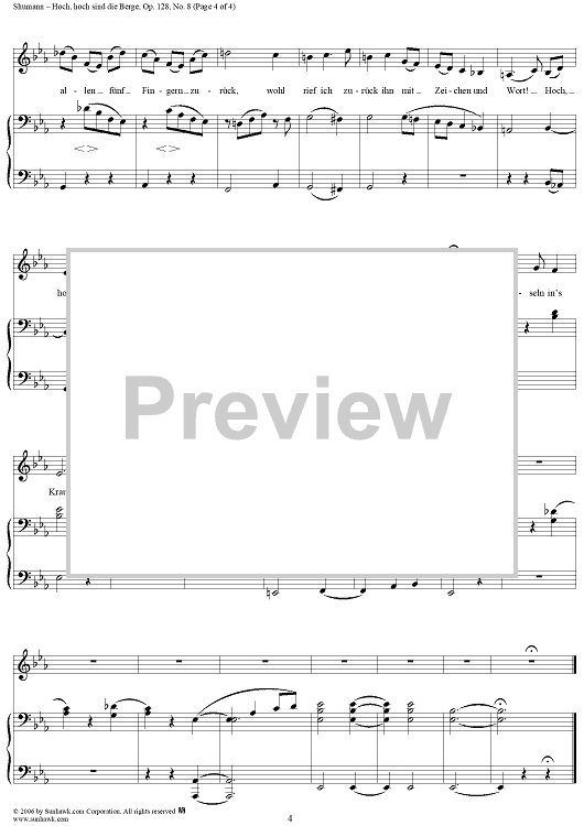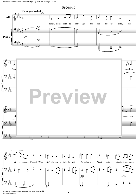 Digital Sheet Music for Spanische Liebeslieder, Op. 138, No. 8: Hoch, hoch sind die Berge by Emanuel Geibel, Robert Schumann scored for Voice/Piano, 4 Hands; id:315712