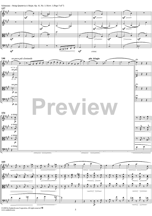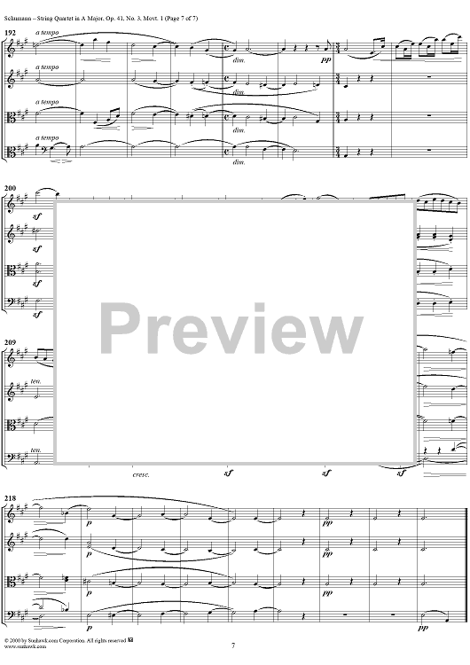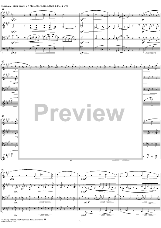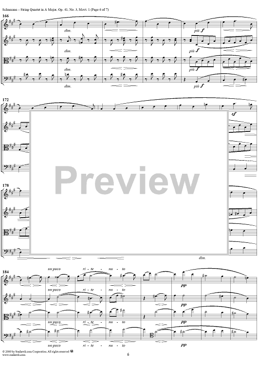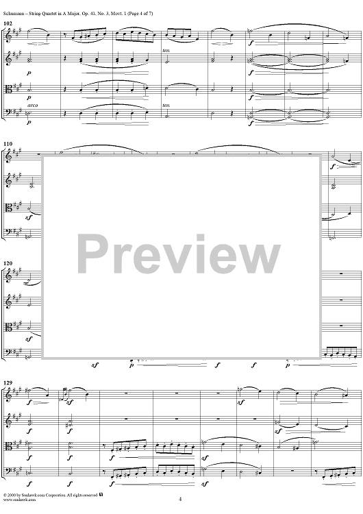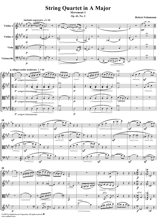 Digital Sheet Music for String Quartet No. 3, Movement 1 - Score by Robert Schumann scored for String Quartet; id:258698