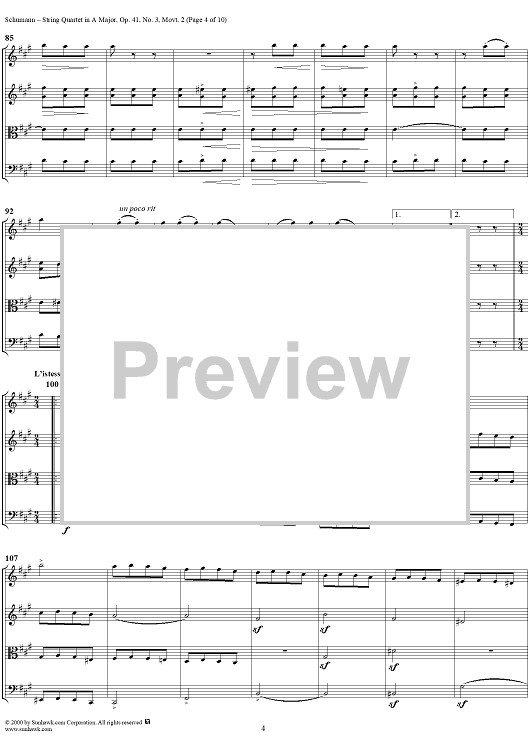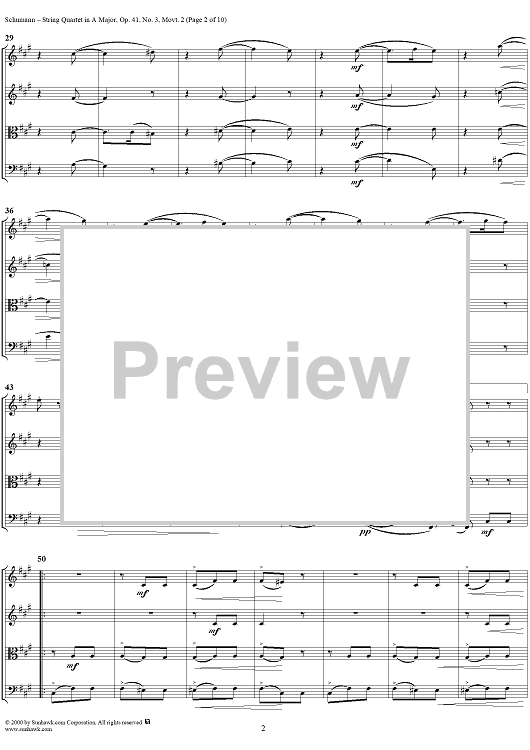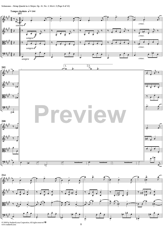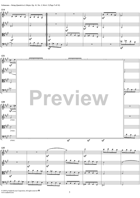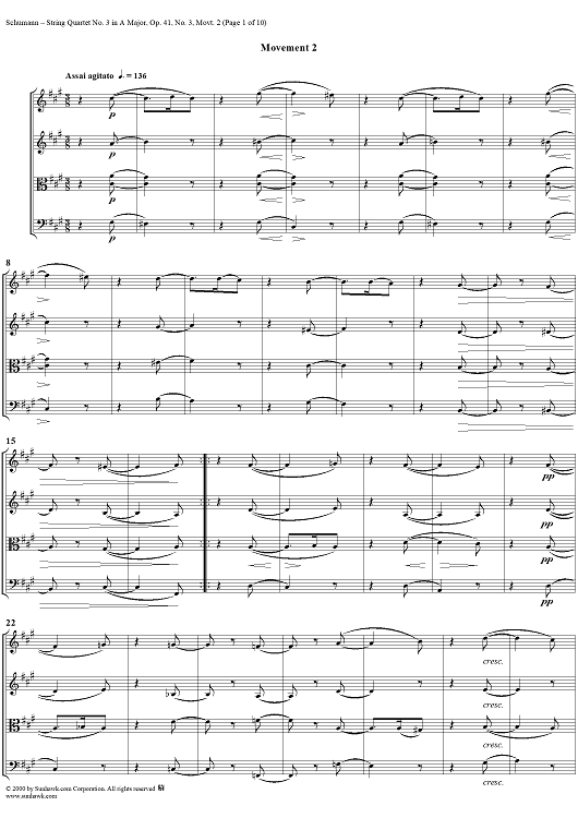 Digital Sheet Music for String Quartet No. 3, Movement 2 - Score by Robert Schumann scored for String Quartet; id:241401