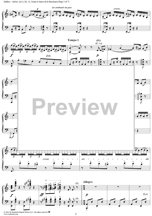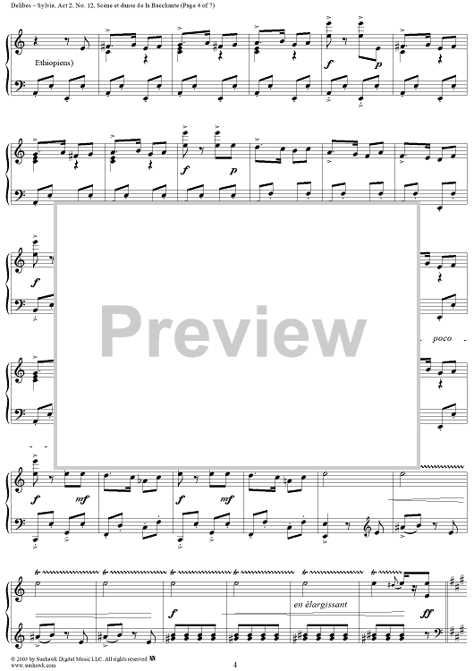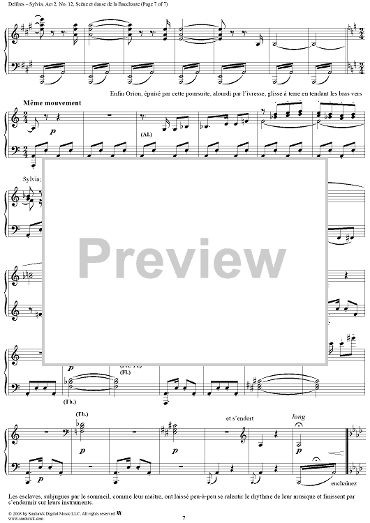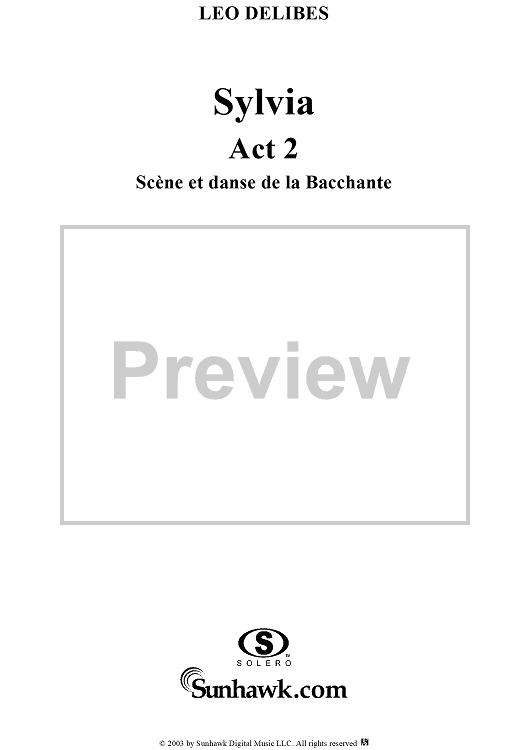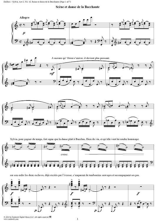 Digital Sheet Music for Sylvia, Act 2, No. 12: Scène et Danse de la Bacchante - Piano Score by Leo Delibes scored for Piano Solo; id:295429