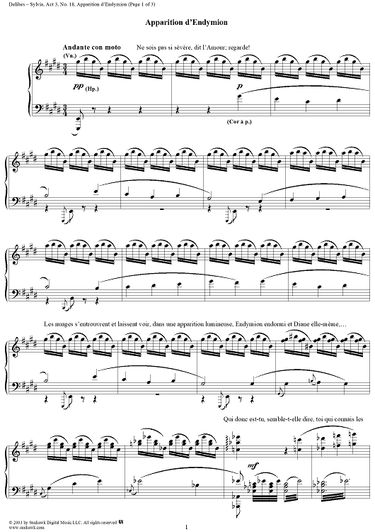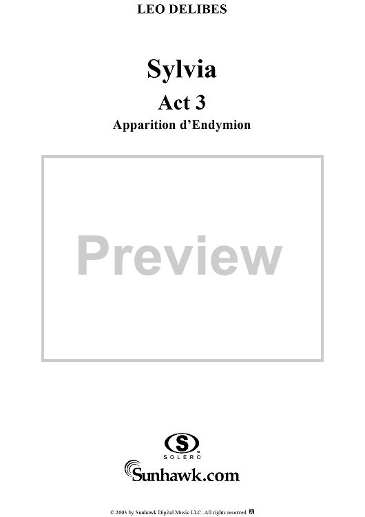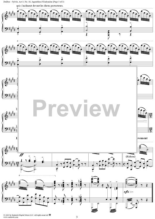 Digital Sheet Music for Sylvia, Final - Apothéose, No. 18: Apparition d'Endymion - Piano Score by Leo Delibes scored for Piano Solo; id:295440