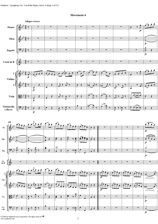 "Symphony No. 5 in B-flat Major (D485) Movement 4 - Full Score" Sheet Music by Franz Schubert
