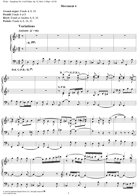 Digital Sheet Music for Symphony No. 8 in B Major, Op. 42: Movt. 4 by Charles-Marie Widor scored for Organ Solo; id:297954