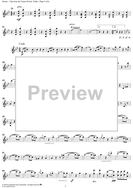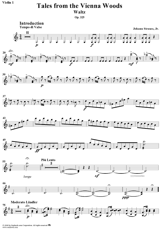 Digital Sheet Music for Tales from the Vienna Woods - Violin 1 by Johann Strauss II scored for Piano Solo; id:241396