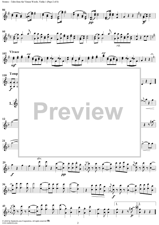 "Tales from the Vienna Woods - Violin 1" Sheet Music by Johann Strauss II