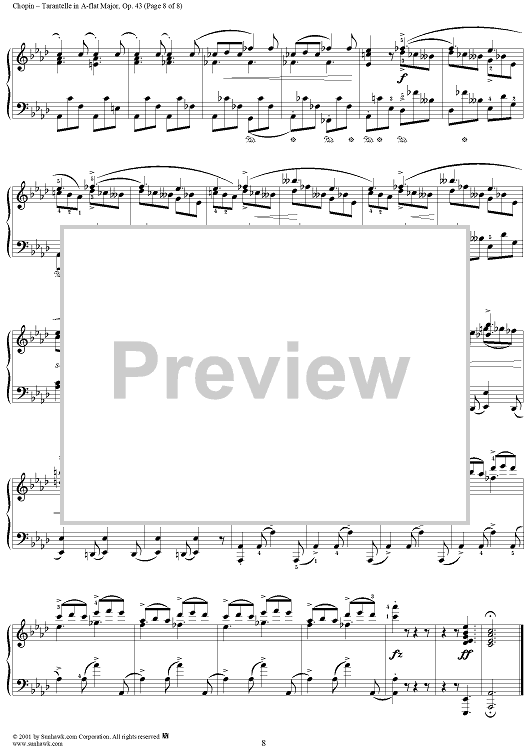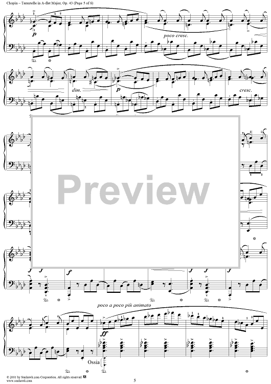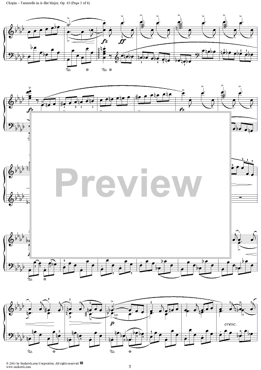 Digital Sheet Music for Tarantelle in A-flat Major, Op. 43, B139 by Frederic Chopin scored for Piano Solo; id:273110