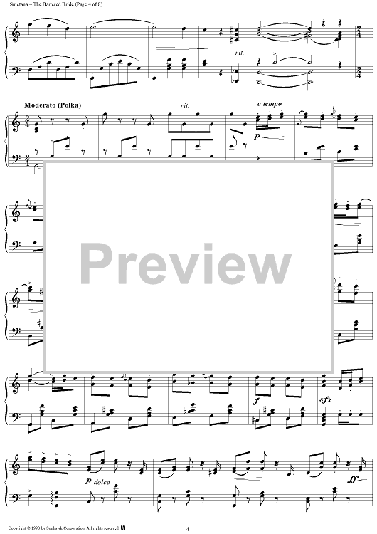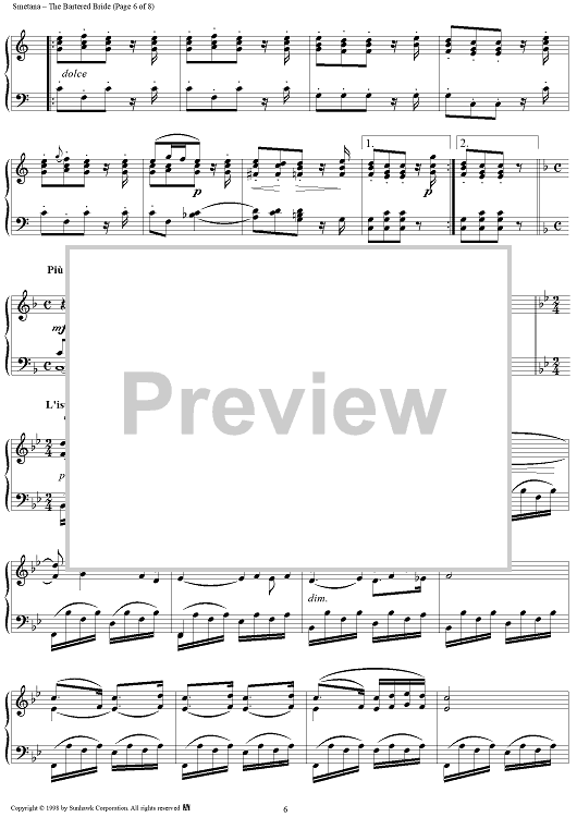 Digital Sheet Music for The Bartered Bride (Highlights for Piano) by Bedrich Smetana scored for Piano Solo; id:95604