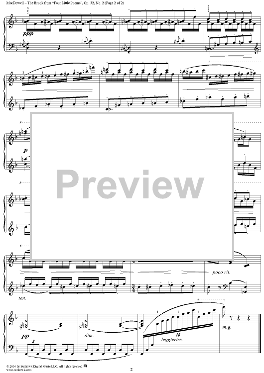 Digital Sheet Music for The Brook, Op. 32, No. 2 by Edward MacDowell scored for Piano Solo; id:295510