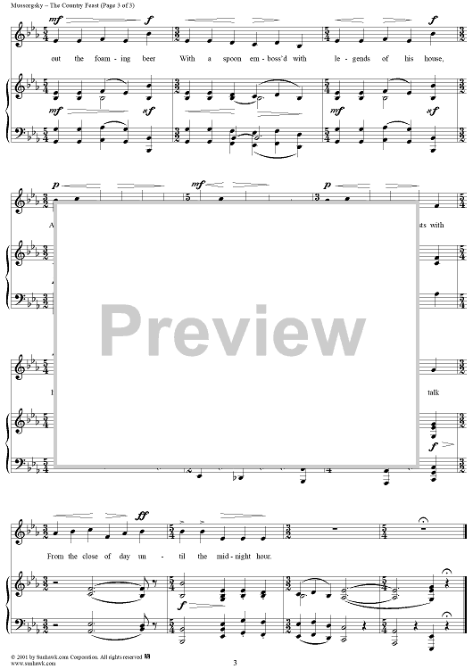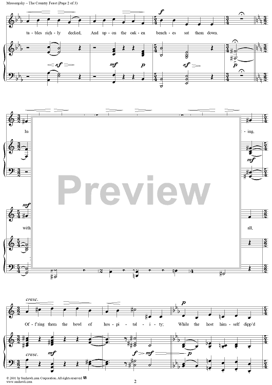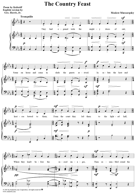 Digital Sheet Music for The Country Feast by Modest Musorgsky scored for Voice/Piano; id:262574