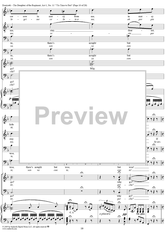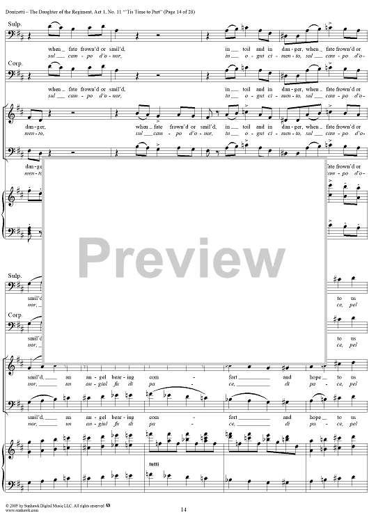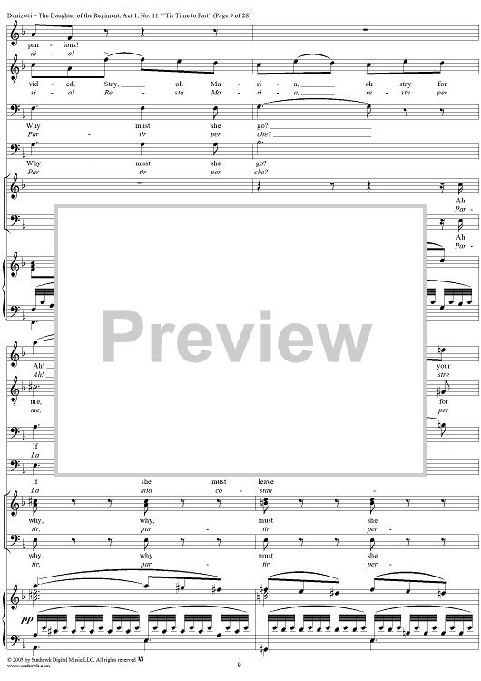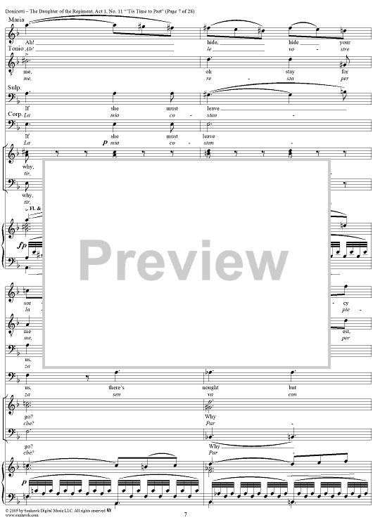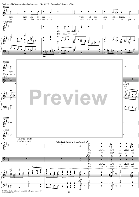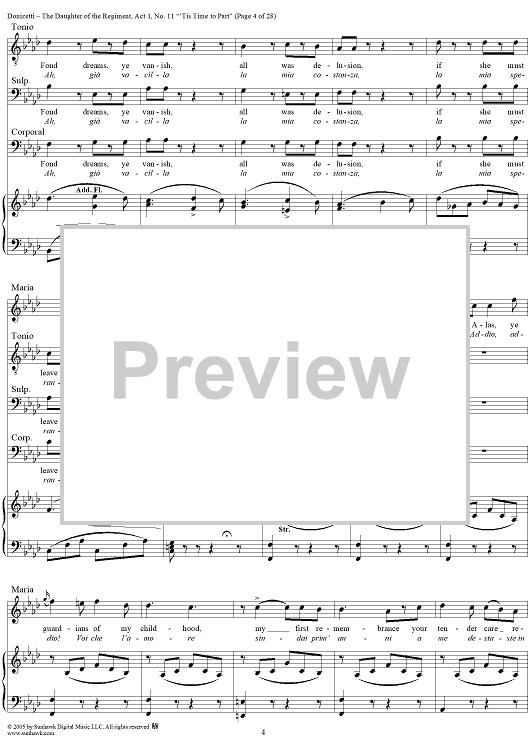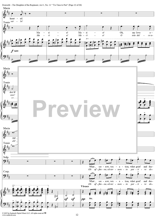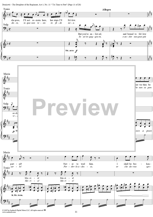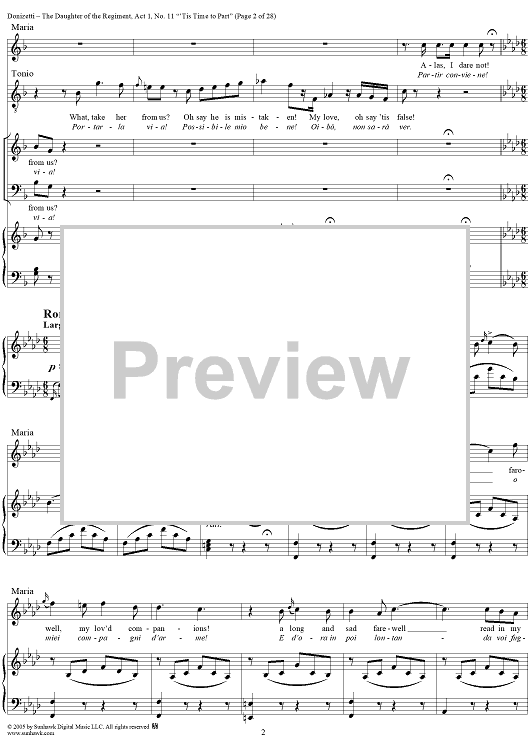Digital Sheet Music for The Daughter of the Regiment, Act 1, No. 11: "'Tis time to part" - Score by Gaetano Donizetti scored for Voice/Piano; id:305560