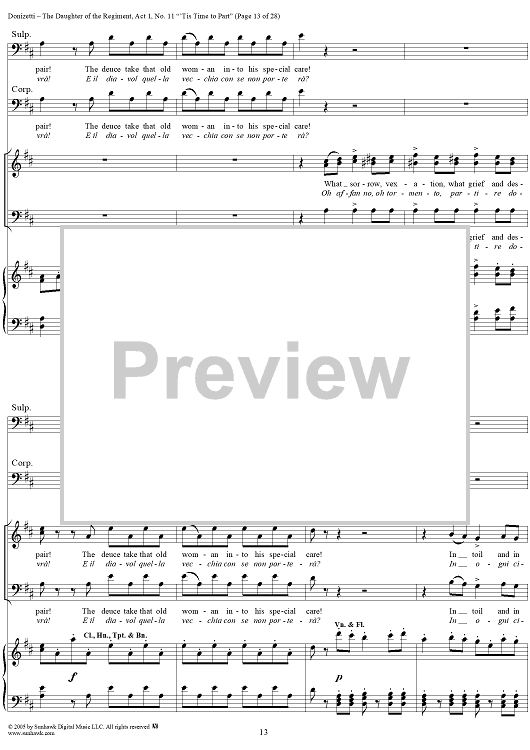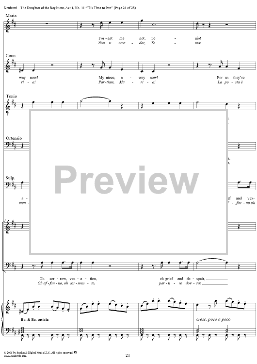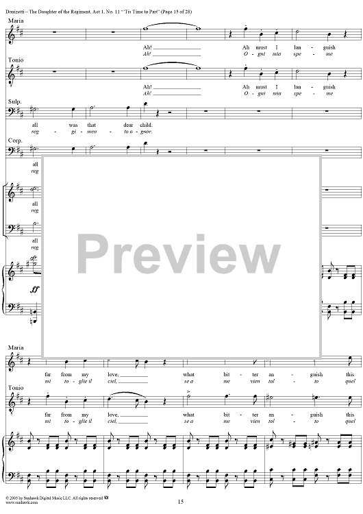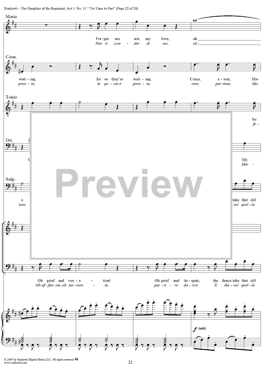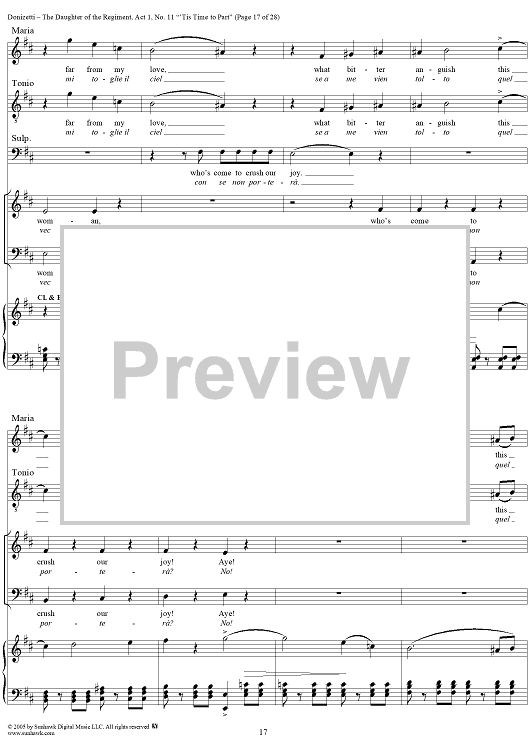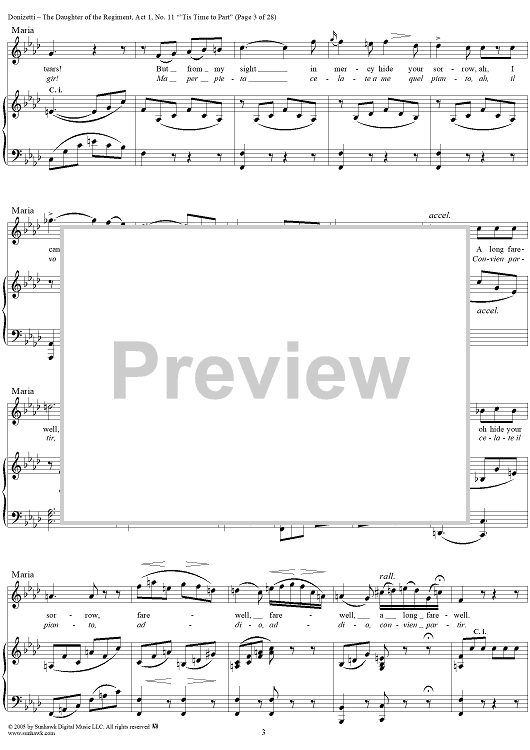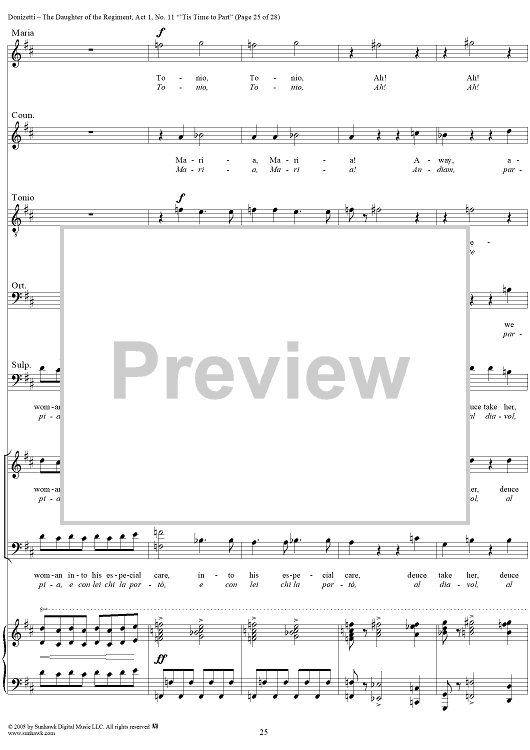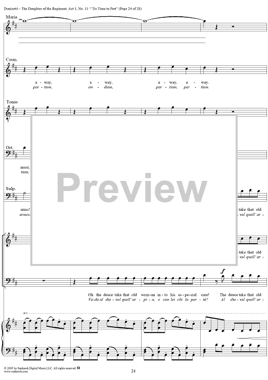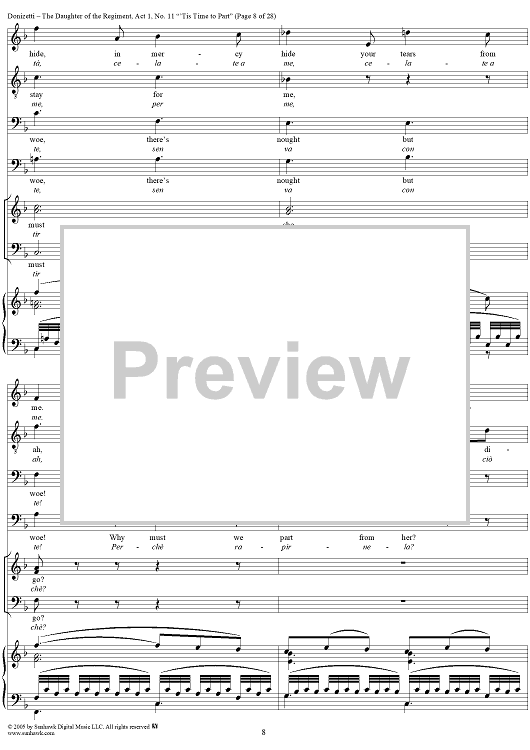 Digital Sheet Music for The Daughter of the Regiment, Act 1, No. 11: "'Tis time to part" - Score by Gaetano Donizetti scored for Voice/Piano; id:305560