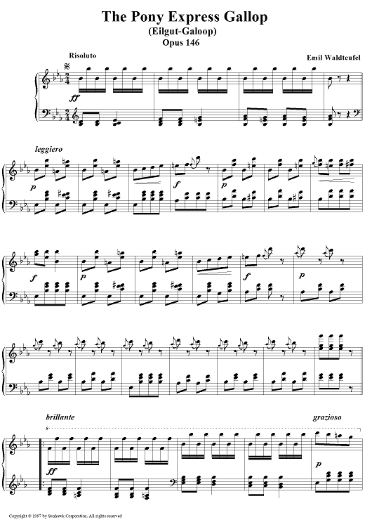 Digital Sheet Music for The Pony Express Gallop by Emile Waldteufel scored for Piano Solo; id:94884