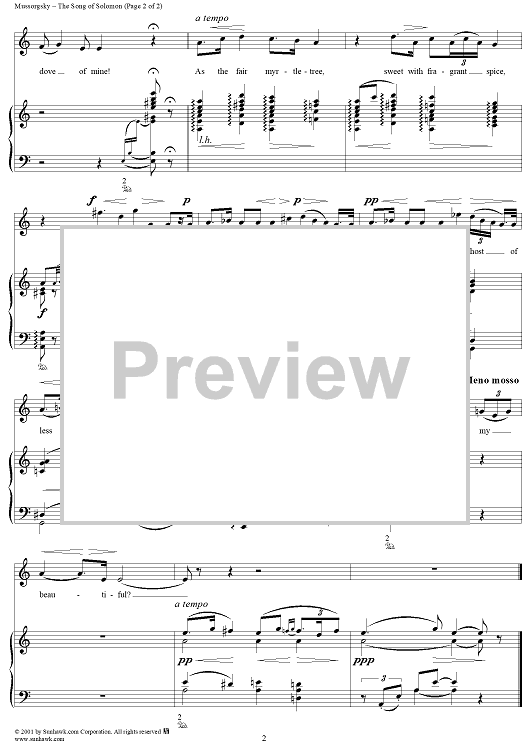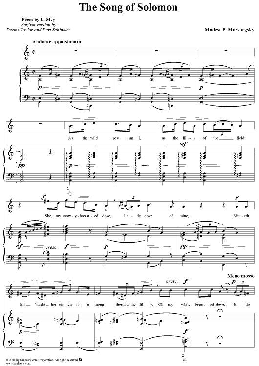 Digital Sheet Music for The Song of Solomon by Modest Musorgsky scored for Voice/Piano; id:270804