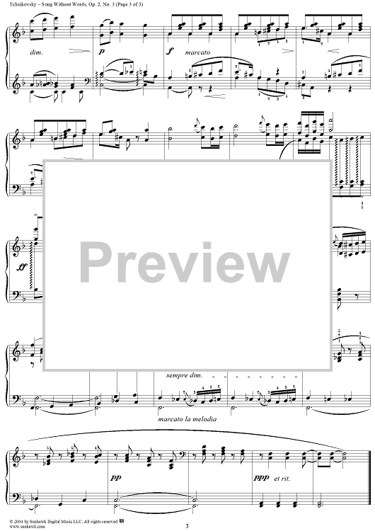 Digital Sheet Music for Three pieces ''Souvenir de Hapsal''. No. 3. Song Without Words by Peter Ilyich Tchaikovsky scored for Piano Solo; id:262412