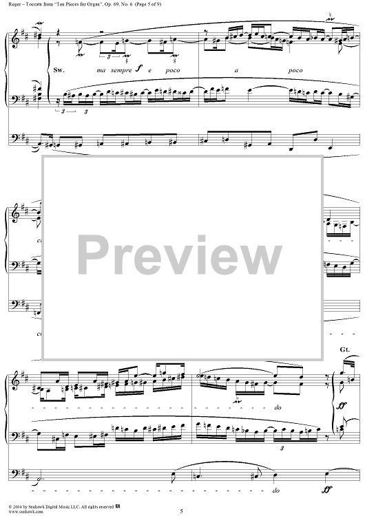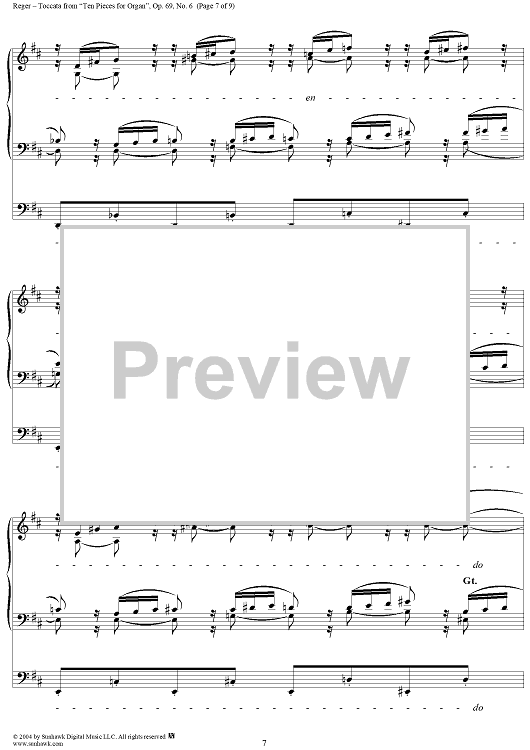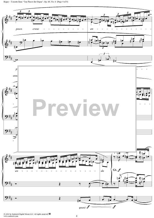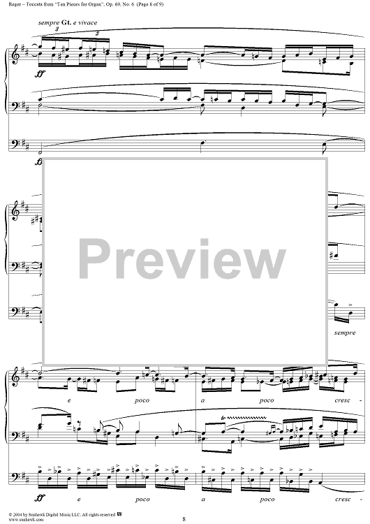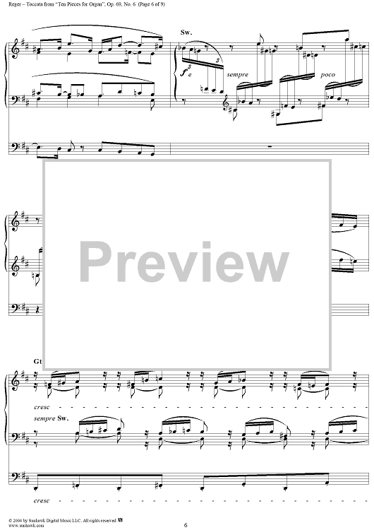 Digital Sheet Music for Toccata, No. 6 from "Ten Pieces for Organ", Op. 69 by Max Reger scored for Organ Solo; id:297887