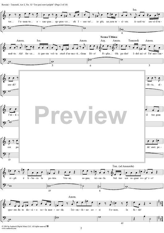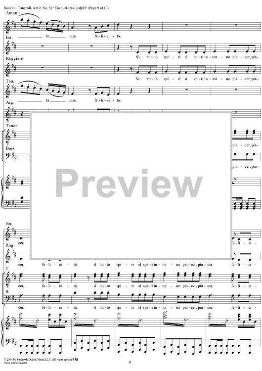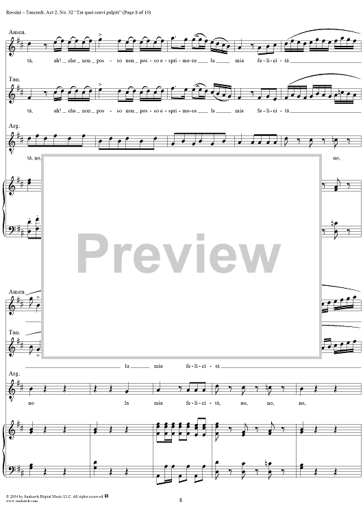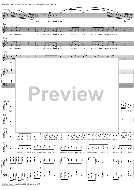 Digital Sheet Music for Tra quei soavi palpiti: No. 32 from "Tancredi", Act 2, Scene 18 - Score by Gioachino Rossini scored for Voice/Piano; id:302895