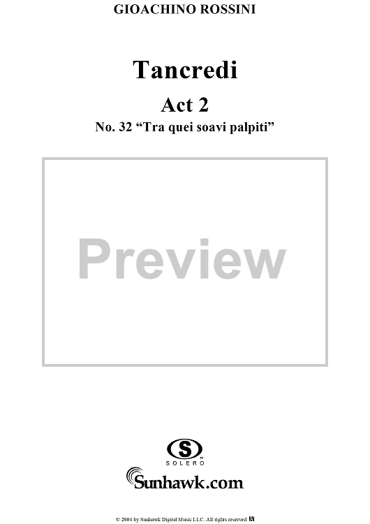 "Tra quei soavi palpiti: No. 32 from "Tancredi", Act 2, Scene 18 - Score" Sheet Music by Gioachino Rossini