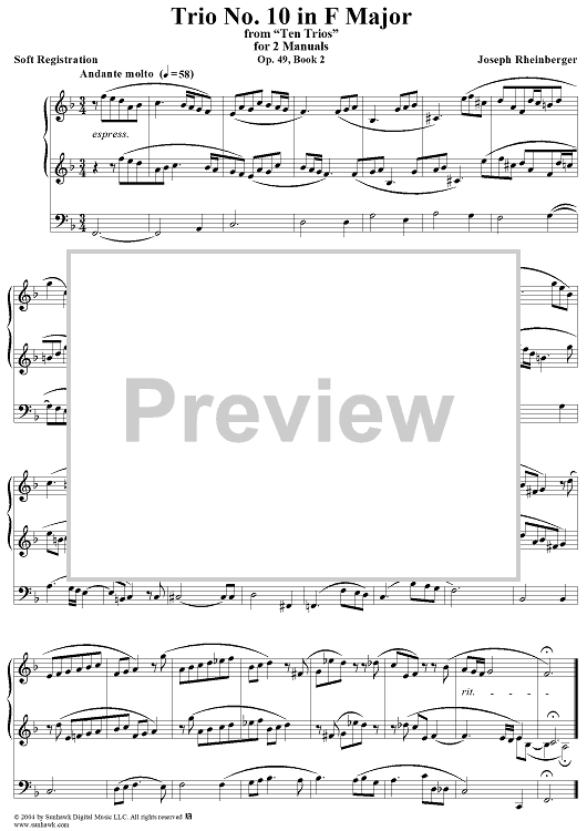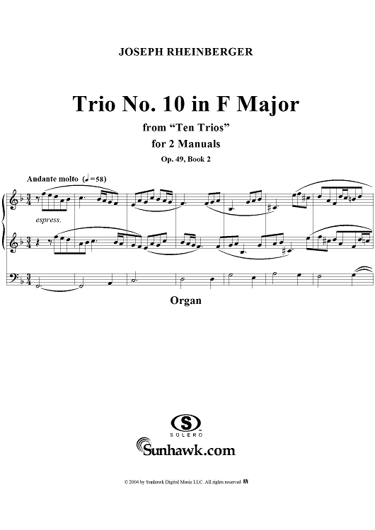 Digital Sheet Music for Trio No. 10 in F Major from "Ten Trios", Op. 49, Book 2 by Joseph Rheinberger scored for Organ Solo; id:303139