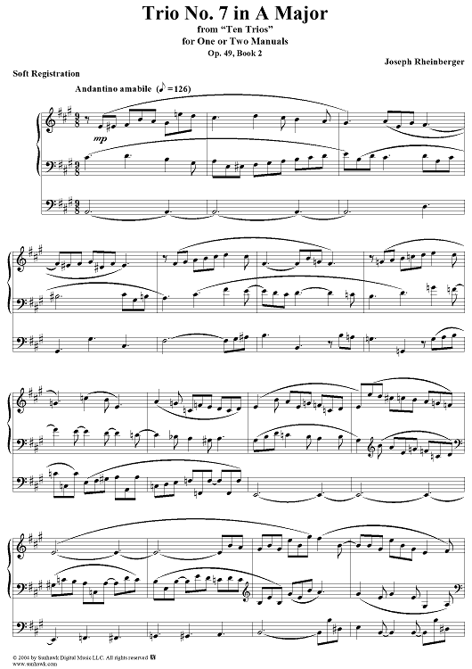 Digital Sheet Music for Trio No. 7 in A Major from "Ten Trios", Op. 49, Book 2 by Joseph Rheinberger scored for Organ Solo; id:303136