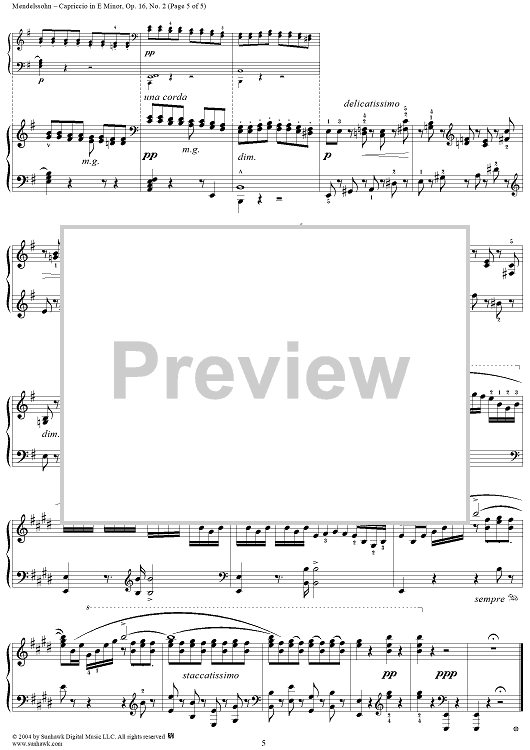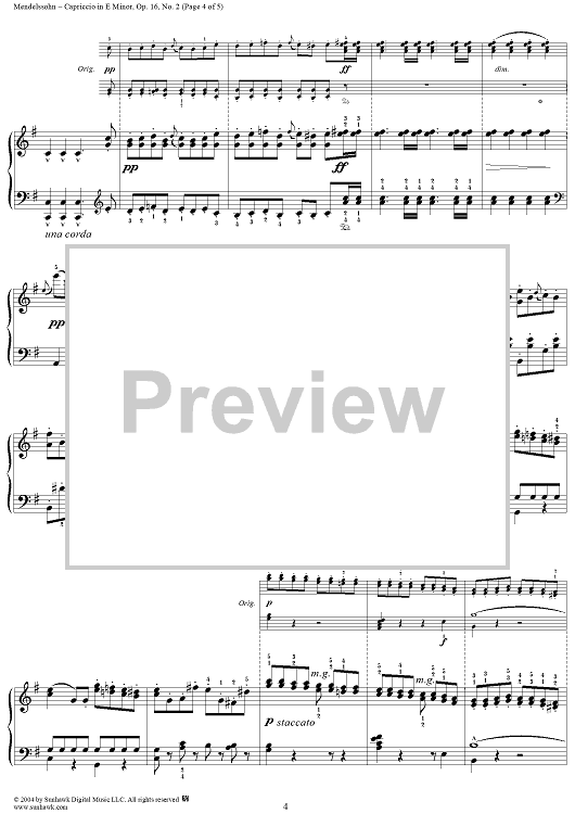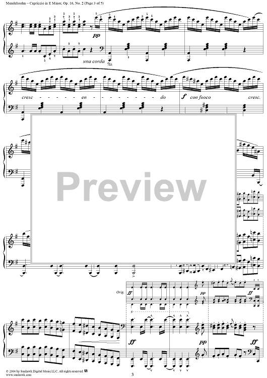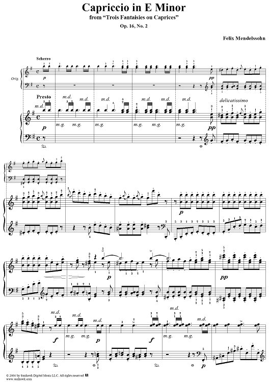 Digital Sheet Music for Trois Fantaisies ou Caprices, Op. 16, No. 2: Capriccio in E Minor by Felix Mendelssohn scored for Piano Solo; id:296085