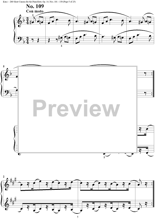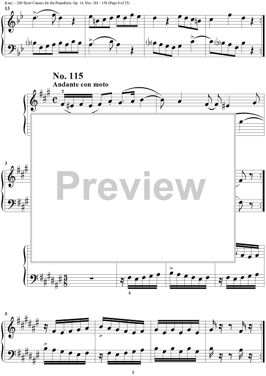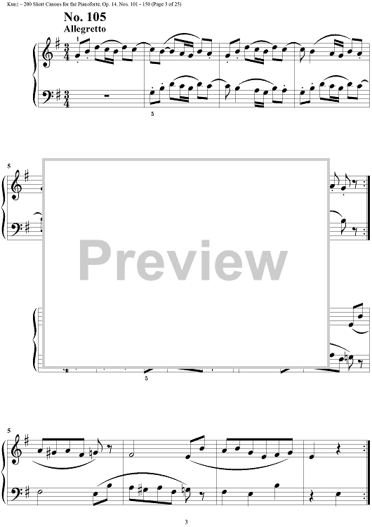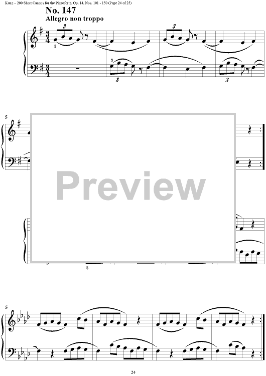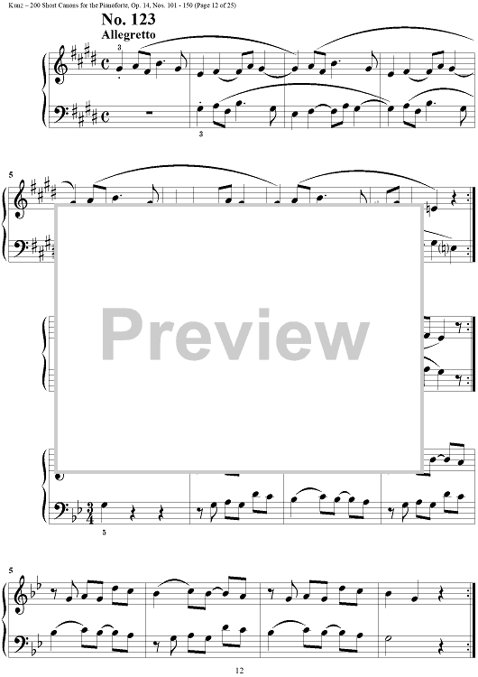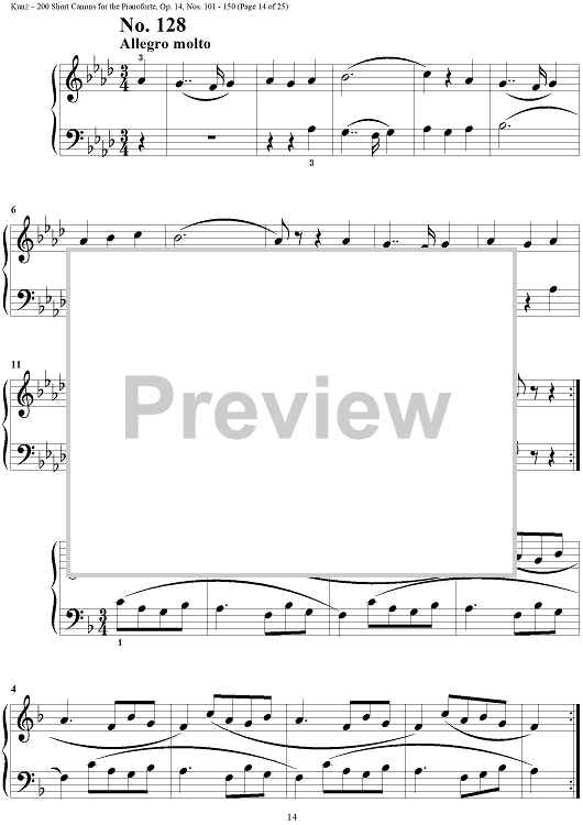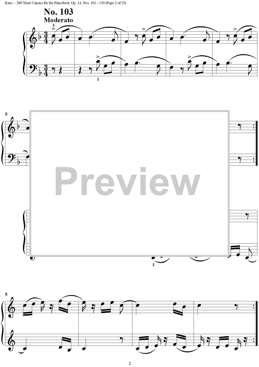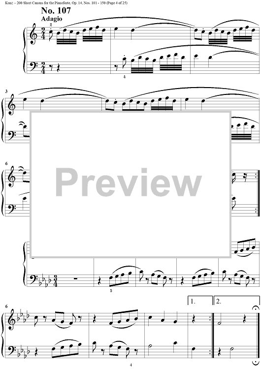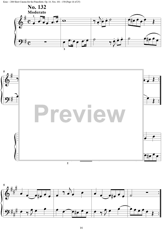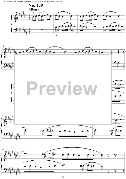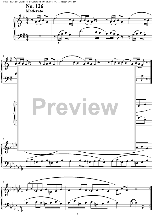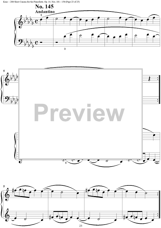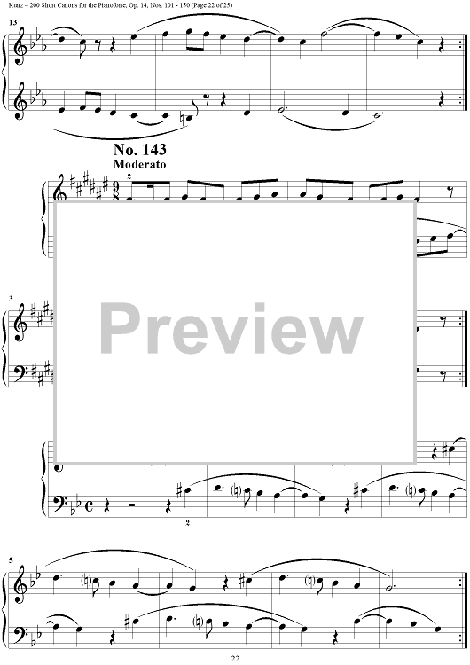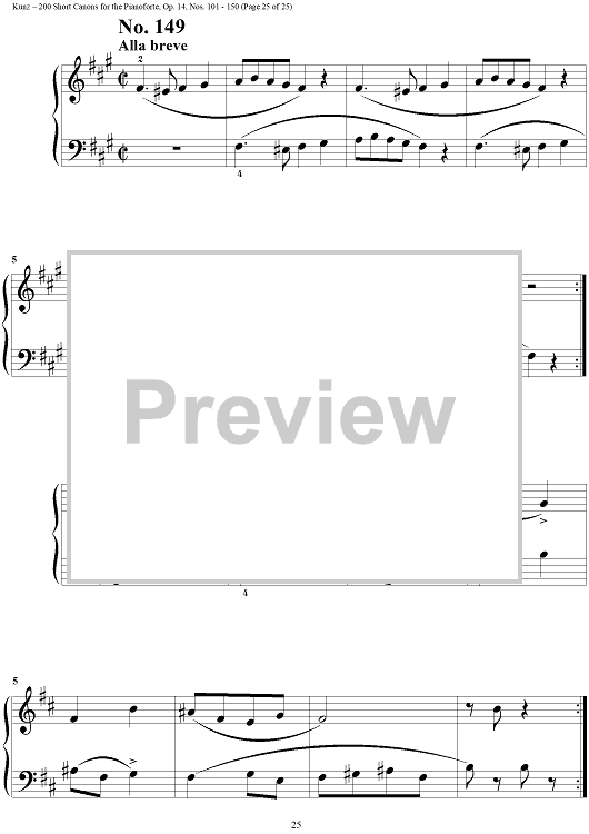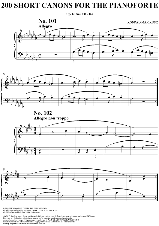 Digital Sheet Music for Two Hundred Short Two-Part Canons, Op. 14, Nos. 101 - 150 by Konrad Max Kunz scored for Piano Solo; id:295015