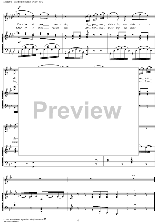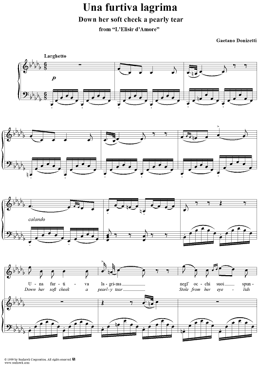 "Una furtiva lagrima" Sheet Music by Gaetano Donizetti