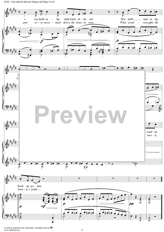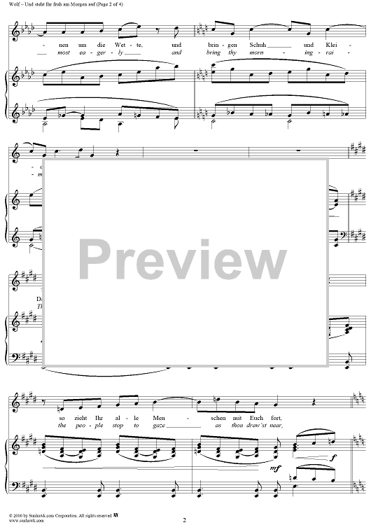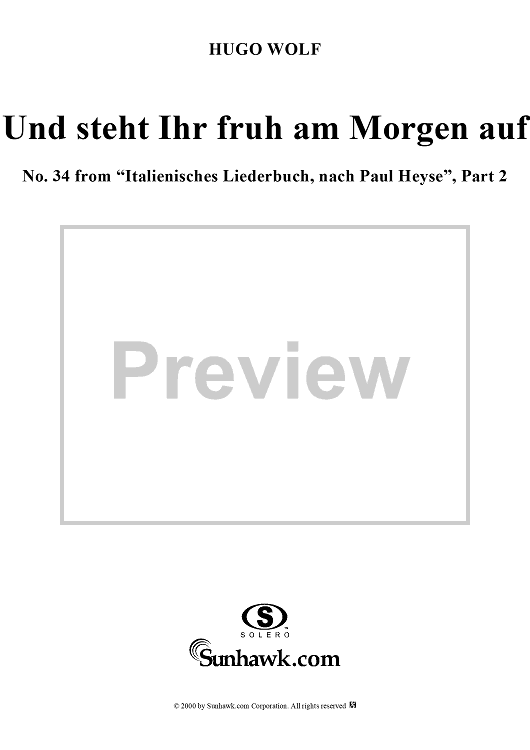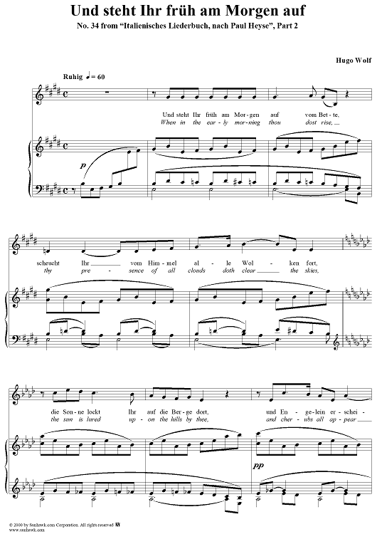 Digital Sheet Music for Und steht Ihr früh am Morgen auf vom Bette, No. 34 from "Italienisches Liederbuch, nach Paul Heyse", Part 2 by Hugo Wolf scored for Voice/Piano; id:255008