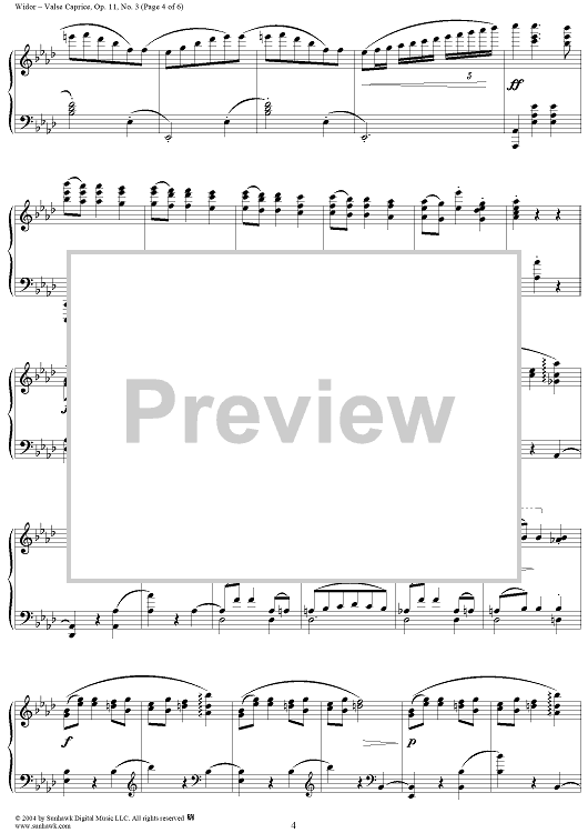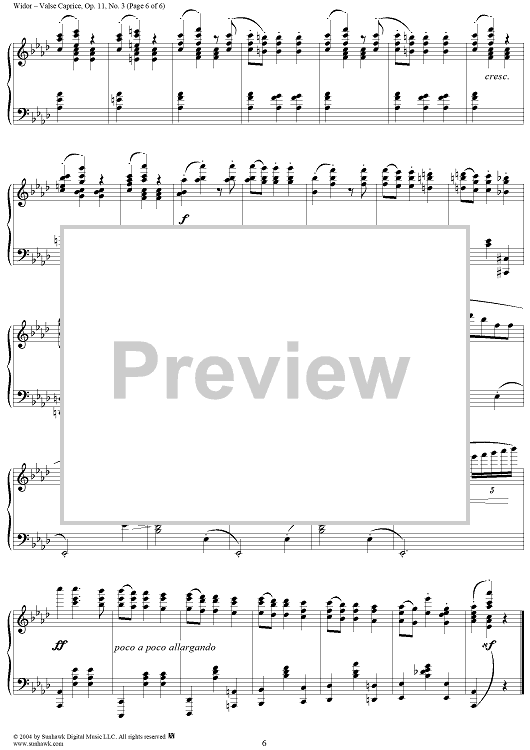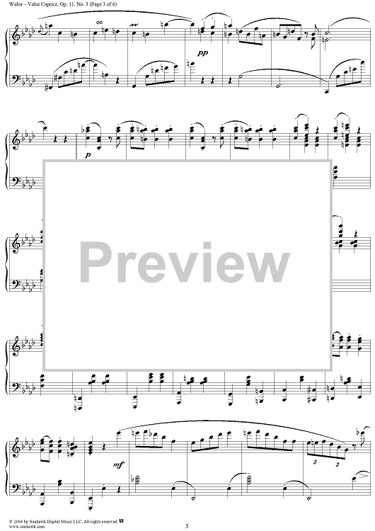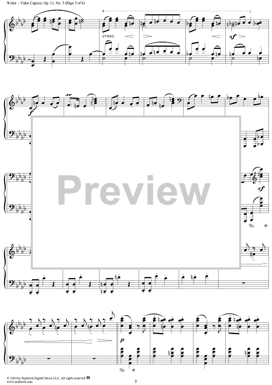 Digital Sheet Music for Valse Caprice, Op. 11, No. 3 by Charles-Marie Widor scored for Piano Solo; id:295576