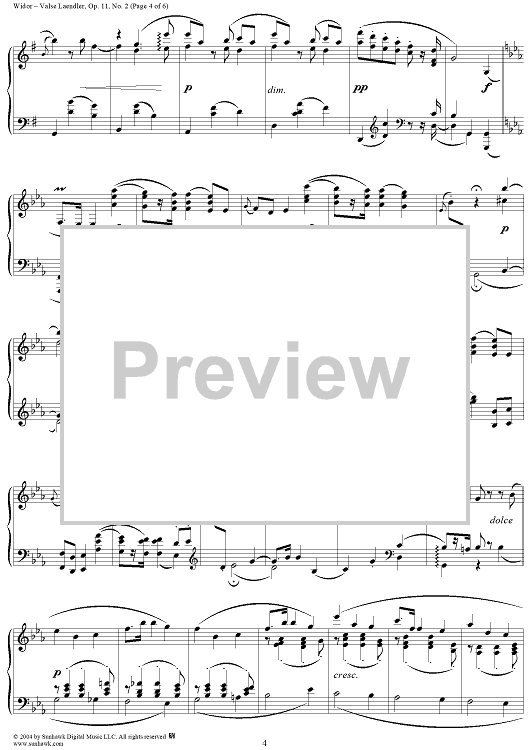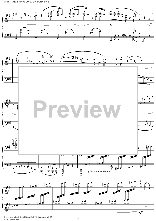 Digital Sheet Music for Valse Laendler, Op. 11, No. 2 by Charles-Marie Widor scored for Piano Solo; id:295575
