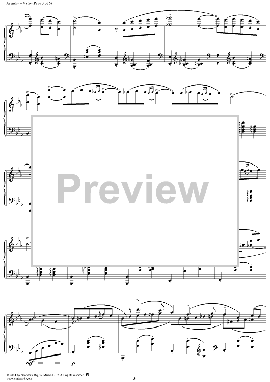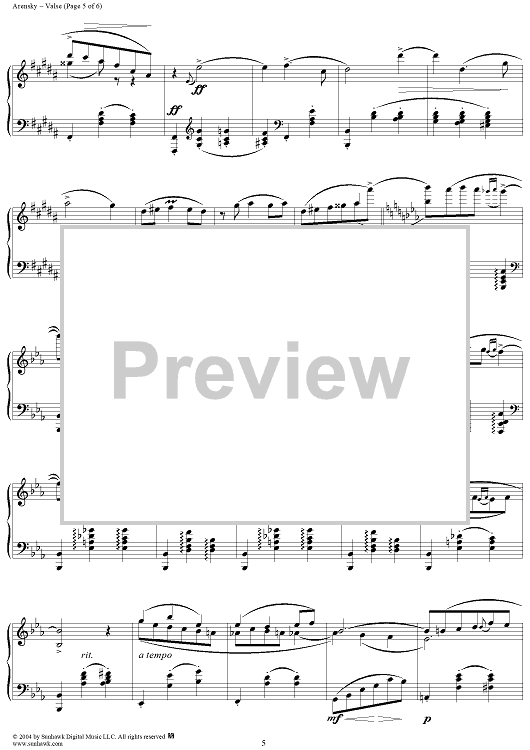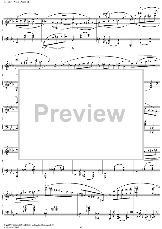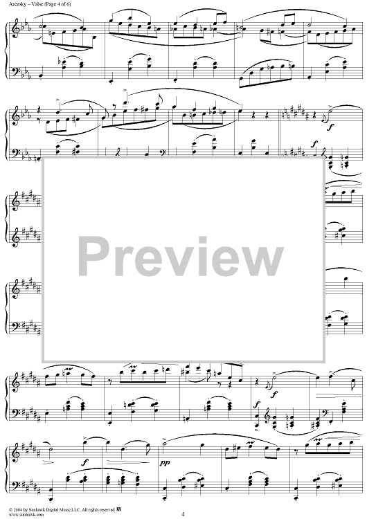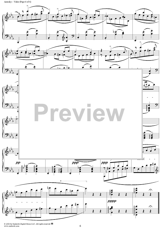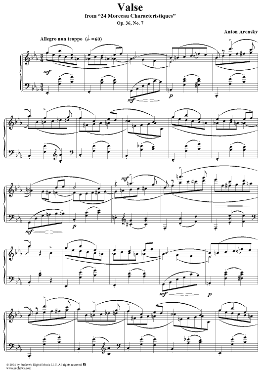 Digital Sheet Music for Valse, No. 7 from "Twenty Four Morceau Characteristiques", Op. 36 by Anton Arensky scored for Piano Solo; id:295116