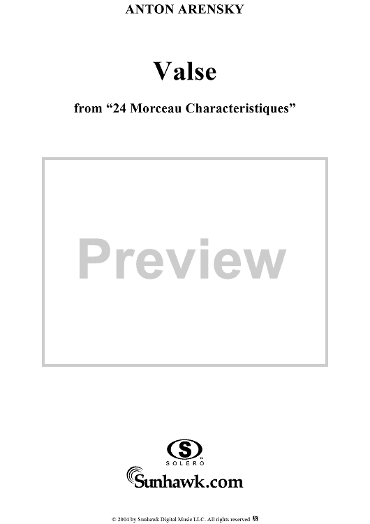 "Valse, No. 7 from "Twenty Four Morceau Characteristiques", Op. 36" Sheet Music by Anton Arensky