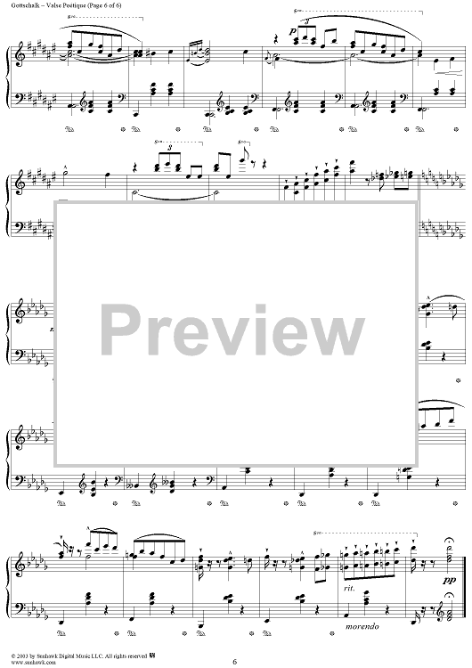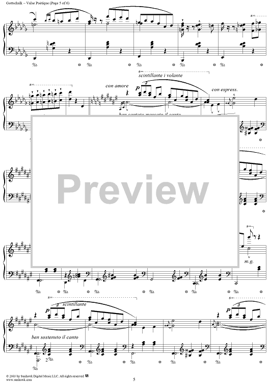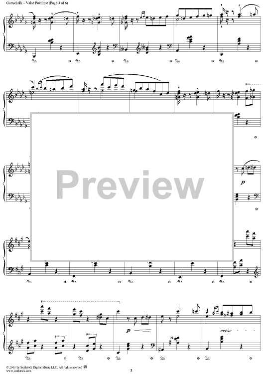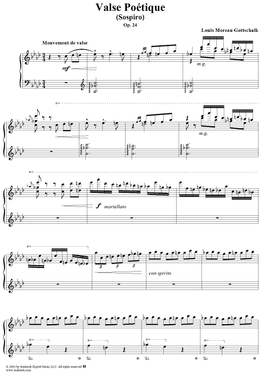Digital Sheet Music for Valse Poetique (Sospiro), Op. 24 by Louis Moreau Gottschalk scored for Piano Solo; id:294813